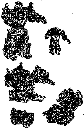 ABILITIES: Compound is a Quadchanger: he can become a giant jeep, a city, a battle deck and a robot. Compound can detect any approaching vehicle or Decepticon. He uses four neutron blasters, two plasma cannons and a tetrionic phase cannon. Double-U can use the blasters.