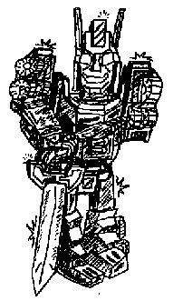 ABILITIES: Besides the illusions, Rerun can use a sword with great confidence. He would rather not kill if he does not have to. He can drive 700 miles before needing more Energon.