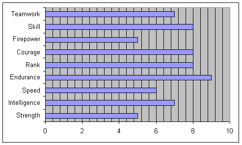 PROFILE: Rushes enemy fortifications for fun, although he has tempered his gung ho attitude just to get the job done with the fewest casualties possible. Still has a reputation for doing crazy manuvers to gain passage through enemy lines. Watches a lot of football and has gotten into hockey.