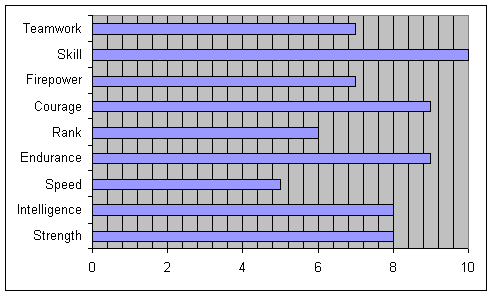 ABILITIES: Targeteer becomes a tank. He has a maximum speed of 50 MPH and a range of 1000 miles accurate fire, 2000 if he's just straffing a zone. He uses a neutron cannon that destroys even the most armored target. He can handle most medium artillery.